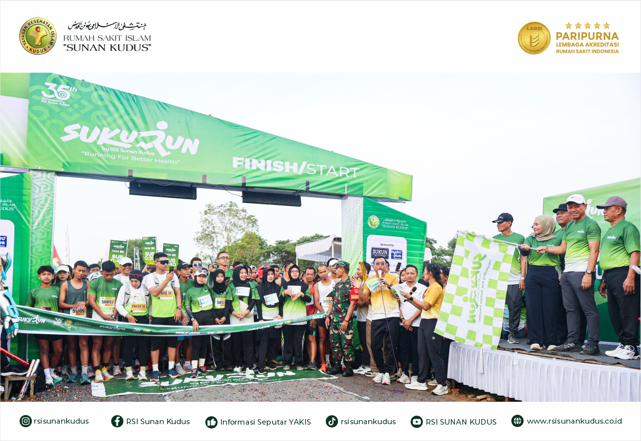 Kudus, 26 Oktober 2025 RSI “SUNAN KUDUS” mengadakan event lari SUKURUN. Kegiatan ini merupakan salah satu rangkaian Hari Lahir ke 35 RSI “SUNAN KUDUS”. Bertempat di lapangan Desa Garung Lor, Kaliwungu Kudus, sebanyak 2.000 peserta mengikuti event ini baik yang berasal dari Kudus maupun luar Kudus.